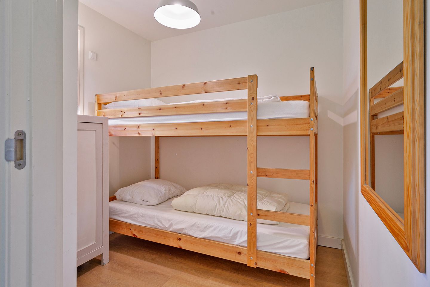 - Erdgeschoss: 1 Schlafzimmer mit Etagenbett (2 Personen)