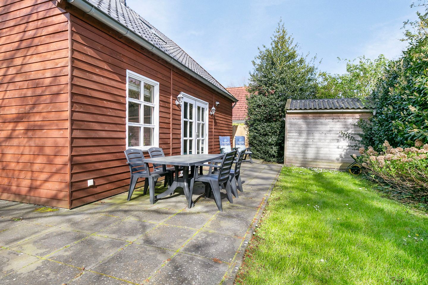 - Mehrere sonnige und schattige Plätze zum Entspannen: Rund ums Haus gibt es